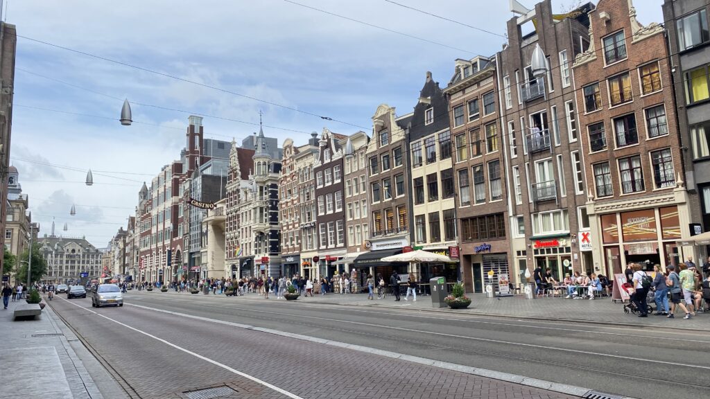 從中央車站出發,直走是被稱為「門戶大街」的Damrak,是進入市中心的主要通道。街道兩側有大型商場、國際知名品牌店鋪、酒店等,也有許多典型的荷蘭樓房,建築風格多樣,呈現歷史感。